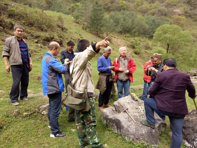在驗(yàn)收期間,專(zhuān)家組在詳細(xì)聽(tīng)取了項(xiàng)目負(fù)責(zé)趙西鋒關(guān)于項(xiàng)目野外工作情況匯報(bào)后,重點(diǎn)對(duì)發(fā)現(xiàn)的金礦化點(diǎn)和兩條晶質(zhì)石墨、金紅石、矽線石礦帶進(jìn)行了實(shí)地檢查驗(yàn)收。