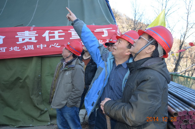 在2015年元旦即將來臨之際,12月28日,國土資源廳副廳長茍潤祥在省廳有關(guān)部門負責(zé)人、我隊王根寶隊長和省地調(diào)中心相關(guān)技術(shù)人員陪同下,前往我隊正在施工的“小秦嶺整裝勘查科研深孔第一鉆”現(xiàn)場檢查指導(dǎo)工作,看望慰問一線施工人員并送去慰問品。